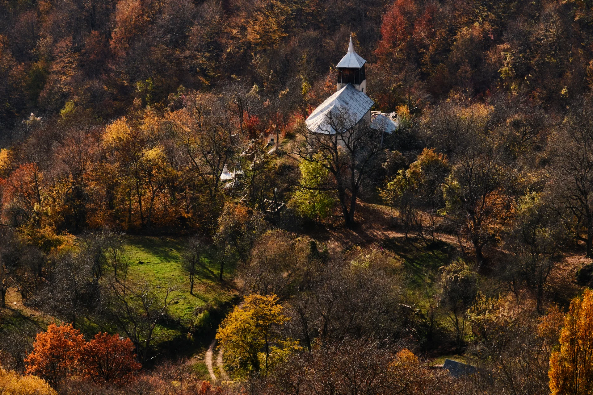 Părăsind orașul Sibiu spre est, intrăm în tărâmul bisericilor fortificate, lăsate în urmă cu secole de coloniștii sași din Transilvania. Timpul a măturat multe dintre aceste sate magice, lăsând în urmă doar umbre ale farmecului și gloriei lor de odinioară. Printre dealurile line, siluete îndepărtate se ridică deasupra acoperișurilor de țiglă, atrăgând urmele călătorilor curioși. Adesea admirată de departe pentru peisajul său pitoresc, biserica fortificată din Hosman se remarcă pentru fundalul său dramatic, turnurile și zidurile sale reproducând parcă vârfurile și crestele spectaculoase ale Făgărașului. Puțini oameni ajung până în sat și și mai puțini urcă la masiva biserică romanică care încă își păstrează o parte din caracterul său medieval. Înconjurat de pășuni și păduri vibrante, Hosman reprezintă o poartă autentică către universul fascinant al Podișului Transilvaniei. La doar câțiva kilometri mai departe, un alt rai liniștit este aproape ascuns printre dealurile verzi. Satul adormit Fofeldea s-ar putea să nu fie renumit pentru moștenirea sa saxonă, totuși farmecul său aproape suprarealist rezultă mai ales din locația sa uimitoare, pierdut fiind într-o mică vale adesea acoperită de ceață. A ajunge în vârful dealurilor dinspre nord și a privi răsăritul soarelui într-o dimineață rece de toamnă este aproape o experiență dintr-un alt timp și de pe altă lume. Creasta abruptă a Făgărașului este luminată de primele raze ale răsăritului, urmată de dealurile din jur, deja presărate cu turme de oi și împodobite de mica bisericuță ortodoxă, cocoțată deasupra satului…